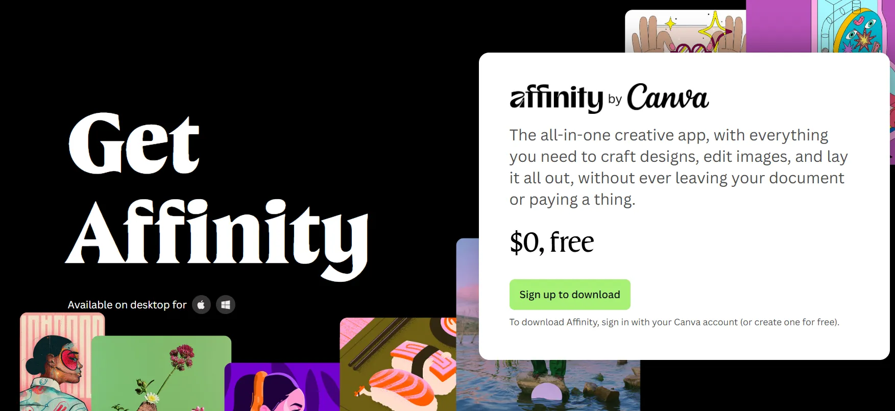 - Dapatkan file installer dengan cara mendownload di website resminya disini https://www.affinity.studio/get-affinity kemudian lanjut dengan membuat akun/login dan mendowload file nya. Jika sudah terdownload ikuti panduan dibawah ini sesuai dengan sistem operasi komputer Anda.