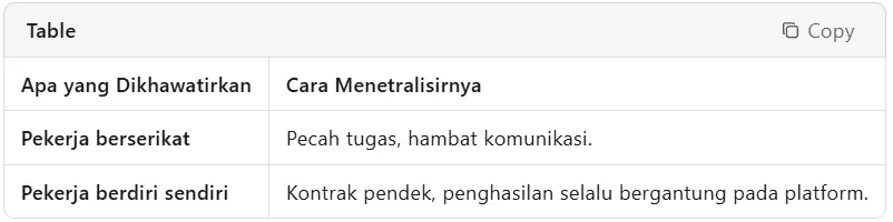 Artikel ini menawarkan jalan keluar: melihat gig economy sebagai titik awal pekerja, bukan negara atau korporasi, mengambil kendali.