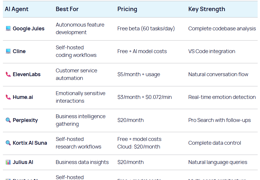 Agen AI terus berevolusi dan mengubah cara kita berinteraksi dengan teknologi. Mulai dari coding otomatis, interaksi suara yang emosional, riset mandiri, analisis data pintar, hingga otomasi UI berbasis natural language, setiap jenis agen memiliki kekuatan dan keterbatasannya. Sebaiknya pilih agen sesuai kebutuhan, mulai dengan solusi cloud untuk hasil cepat, lalu berkembang ke self-hosted bila perlu kontrol ekstra.
