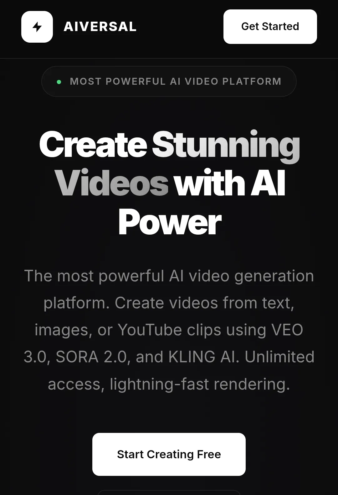 The most powerful AI video generation platform. Create videos from text, images, or YouTube clips using VEO 3.0, SORA 2.0, and KLING AI. Unlimited access, lightning-fast rendering.