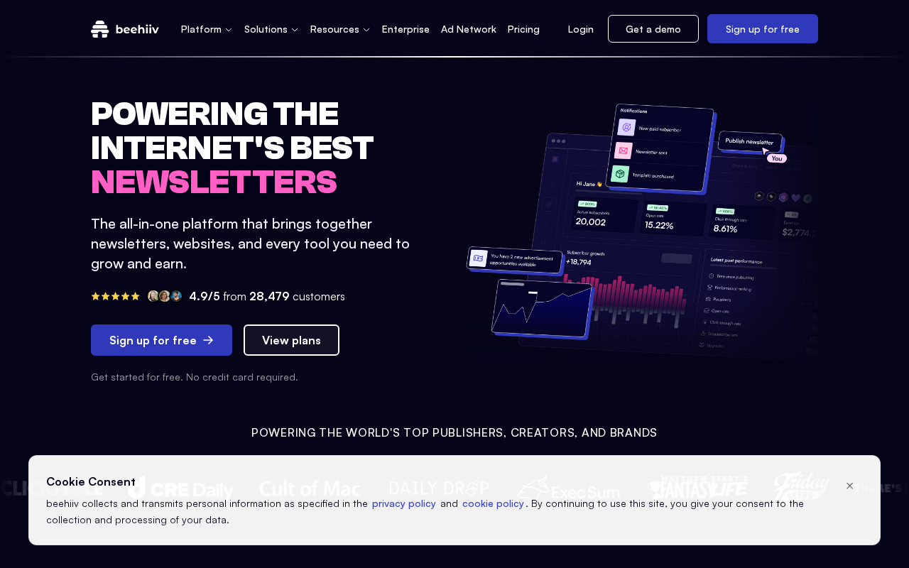 Beehiiv menawarkan rangkaian alat lengkap untuk membuat, memonetisasi, dan mengembangkan audiens newsletter Anda dengan fitur analitik canggih.