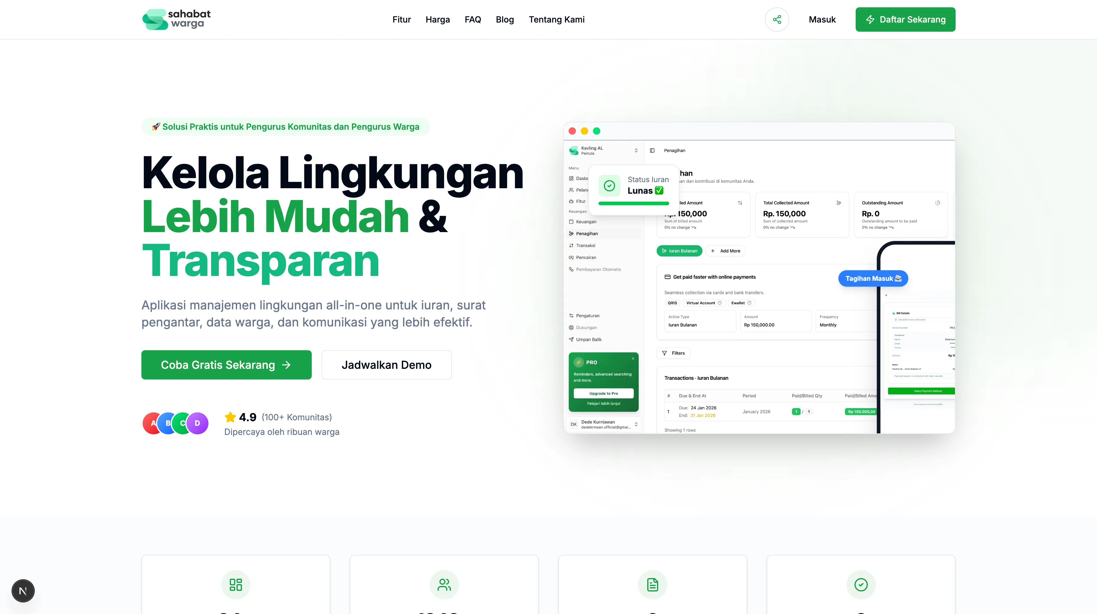 Kami merancang Sahabat Warga untuk menjawab dua kebutuhan utama: Kemudahan bagi Pengurus dan Kenyamanan bagi Warga.