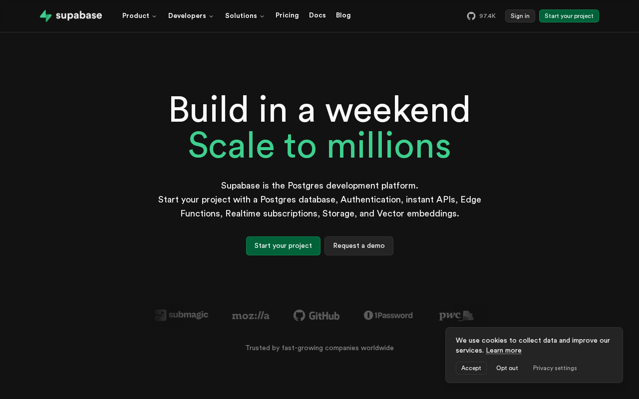 Supabase menyediakan backend-as-a-service lengkap dengan Postgres, Autentikasi, Realtime, dan Edge Functions.