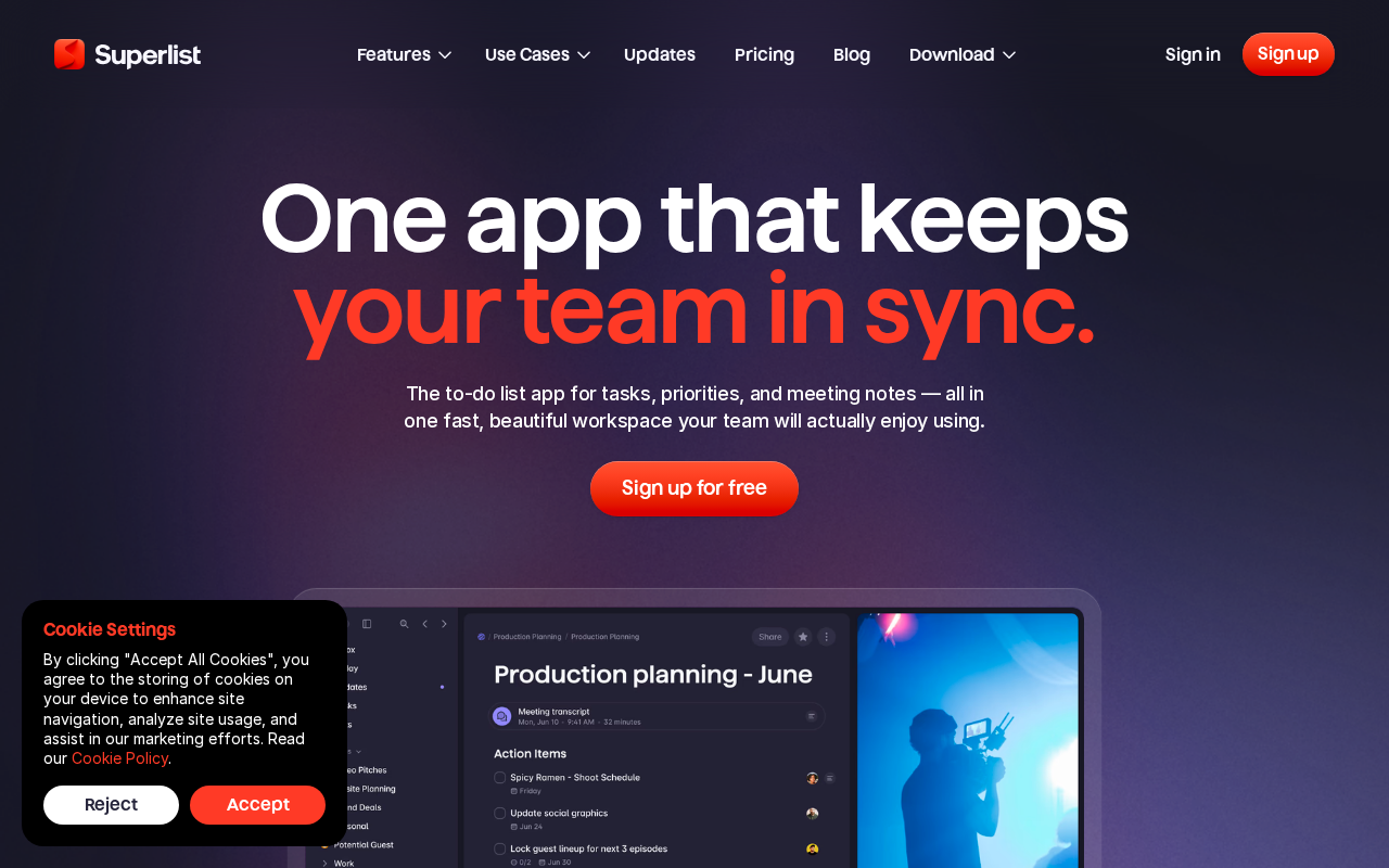 Superlist adalah task manager modern yang memisahkan pekerjaan dan kehidupan pribadi dengan sempurna namun terintegrasi.